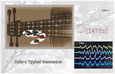 また、チェロの響き(共鳴)を考えるとき、楽器のディメンション・音の波長・方向・干渉・反射・軌道・残響・・などがキーワードとして挙げられそうだ。「個々の楽器によって響きが異なる」とも言えるが、同時に「構造・ディメンション・波長が決まれば周回(・反響)コースは多くのチェロに共通しておのずと定まる」はずである。